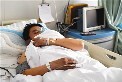 15日零时20分左右,河南长垣县皇冠KTV发生火灾,11人死亡。受伤的24人正在多家医院进行救治,其中1名伤者病情恶化。目前涉事娱乐场所负责人已被警方控制,事故原因仍在调查中。图为一名伤者在河南省长垣县宏力医院接受治疗。新华社发