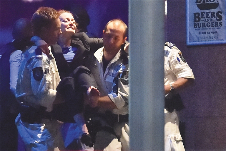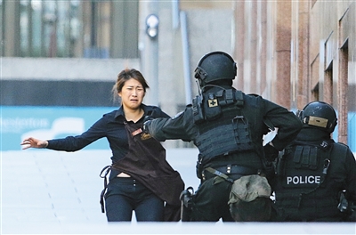 澳大利亚悉尼市区马丁广场的一间咖啡馆15日上午发生劫持人质事件,警方封锁现场。一名携带武器的人于当地时间上午9时30分闯入咖啡馆,估计至少有13名人质。10时10分左右,一面旗帜和几名举起双手的人质出现在咖啡馆窗口。该咖啡馆经理则对媒体表示,劫持发生时,有40至50人在咖啡馆内。