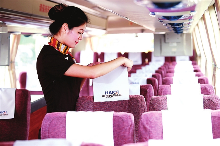开辟“精品快车服务班线”。10月23日,海汽首次推出“海口——琼中”精品快车服务班线,该班线上的3台全新海汽快车,全部安装舒适的商务座椅,铺设木纹地板,增设卫生间、自动空气净化设备和暖风系统,并招聘一批素质较高的大专以上学历的乘务人员,为乘客提供优质服务。同时,乘客可在车上享受无线上网、饮料、报刊杂志、药品、免费充电服务等服务。