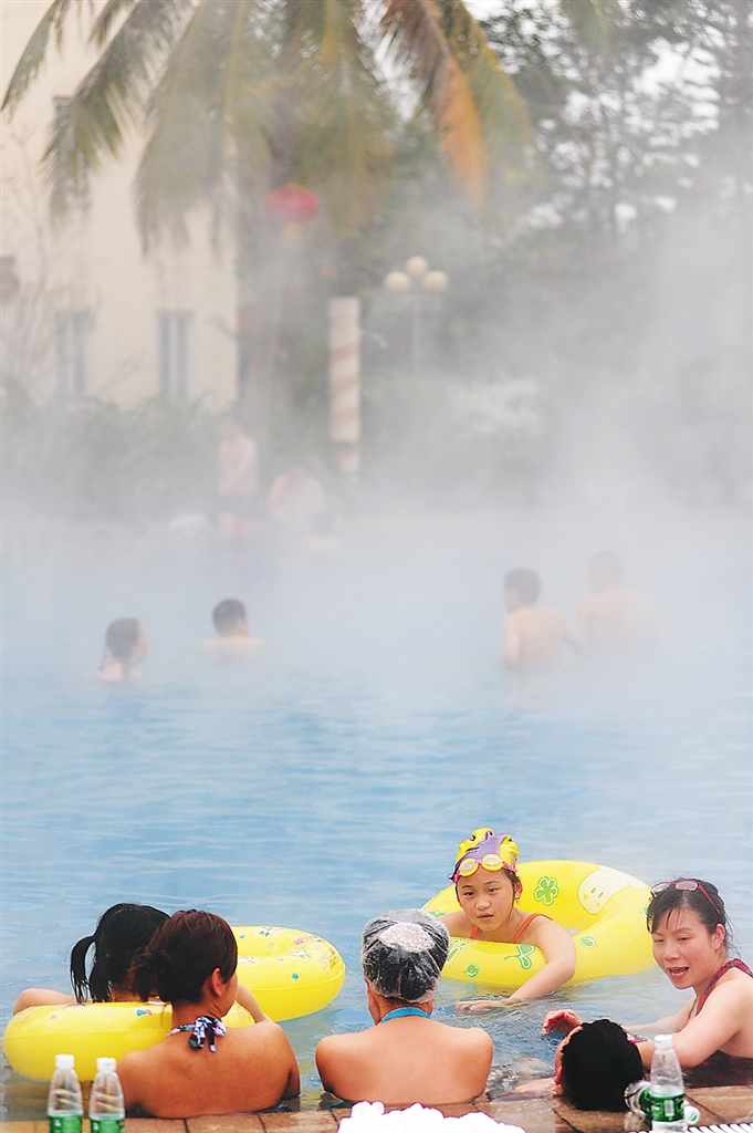 事实也是如此,连日来,记者走访海南各大温泉酒店及温泉度假村等发现,随着天气趋寒,温泉温暖舒适的温度以及它特殊的保健疗效吸引着大量岛内外游客,不少温泉酒店、温泉度假村人满为患。