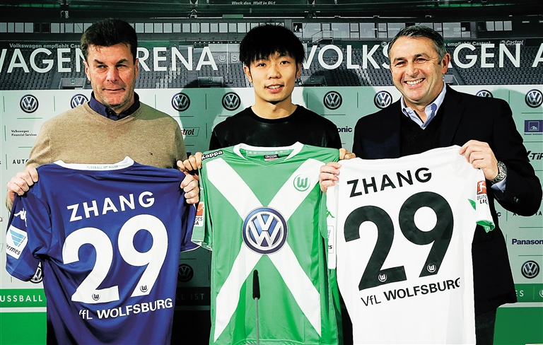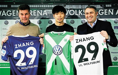 张稀哲以一段流利的德语作为开场白。他说:“大家好,我是张稀哲。今天对我来说是非常重要的一天,我非常高兴能加盟德甲沃尔夫斯堡这样一支顶级球队。我已经准备好迎接挑战,希望我能尽快融入球队,为团队而战。”