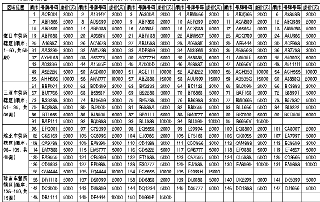 一、发放标的:琼A8888Q等150个小汽车号牌,详细号牌及其竞价底价见附表。