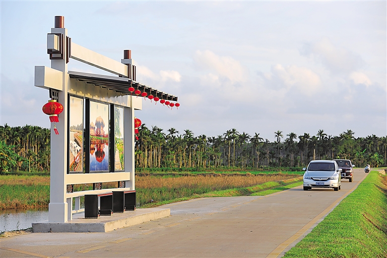 图为琼海市龙寿洋一处新建成的特色公交站亭。