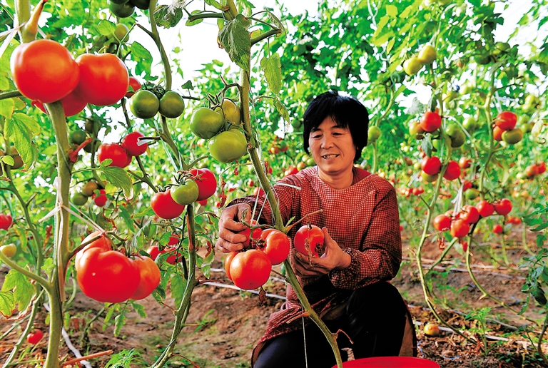 12月17日,河北省望都县一家现代农业产业园的工人在温室大棚里采摘西红柿。近年来,河北省望都县积极探索农村土地流转政策,不断创新土地流转形式,实现农业增效、农民增收,为县域经济发展注入新活力。新华社发