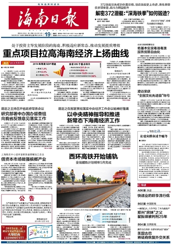 海南日报 头版 001 2014-12-191 2014年12月19日 星期五