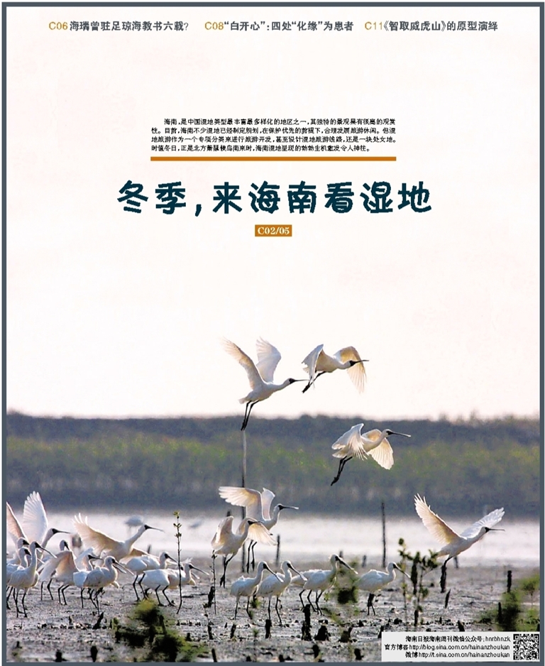 海南,是中国湿地类型最丰富最多样化的地区之一,其独特的景观具有很高的观赏性。目前,海南不少湿地已经制定规划,在保护优先的前提下,合理发展旅游休闲。但湿地旅游作为一个专项分类来进行旅游开发,甚至设计湿地旅游线路,还是一块处女地。时值冬日,正是北方萧瑟候鸟南来时,海南湿地呈现的勃勃生机愈发令人神往。
