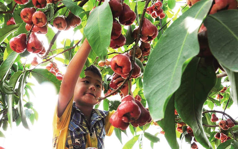 “我们的莲雾园,嫁接了来自5个国家的品种,培育出了最适合海南的新品种。”12月19日,海口市云龙镇金德丰莲雾基地负责人黄益丰说,“我们已经培育出了‘中国红’新品种,解决了裂果的问题。根据试验,裂果率能够控制在10%以下。”