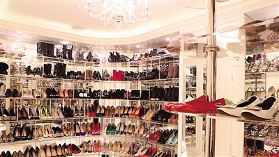据报道,王婧的衣橱装潢十分华丽,各色名牌衣服、鞋子琳琅满目。王婧也自称拥有鞋子四五百双,被爆料是鞋子控、包包控、饰品控,网友纷纷评论称“这个衣橱是多少女人的梦想啊”。