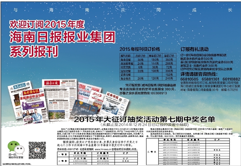 虽然抽奖活动已经结束,但订报活动仍在继续,如果想订阅《海南日报》《南国都市报》的读者,可以拨打热线:66810505,我们将真诚为您服务。