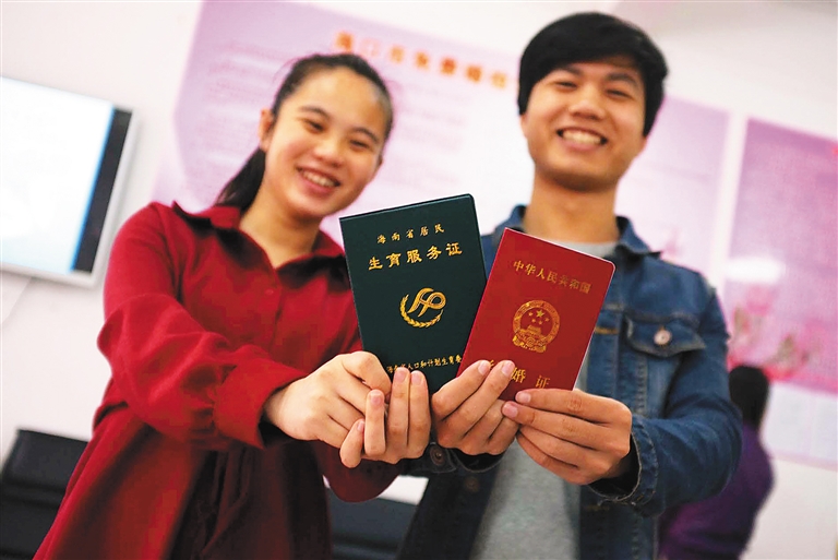 2月26日起,根据省政府深化行政审批改革的要求,海口4个区、琼海等4个市县、20个乡镇成为海南省首批同时发放《结婚证》和《准生证》的地区。到6月26日,“双证同发”实现全省覆盖。