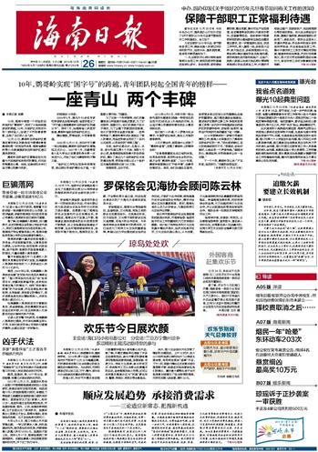 | 海南日报 头版 001 2014-12-261 2014年12月26日 星期五 |