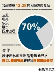 省食药监局稽查局局长刘鸿涛介绍,今年8月份的专项行动查获了130余吨涉嫌走私肉类冻品,这次查到13.28吨。