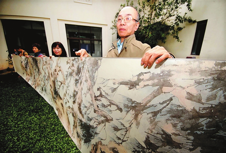 又一次见到著名画家吴孔奇,他带着一幅悠长的画卷而来。12月9日,海口市博物馆,凉风吹过,微雨溅起浅浅的水花。一种静穆的绿在岸边滋长,尽管是冬日,空气中却溢满着绿的芬芳。