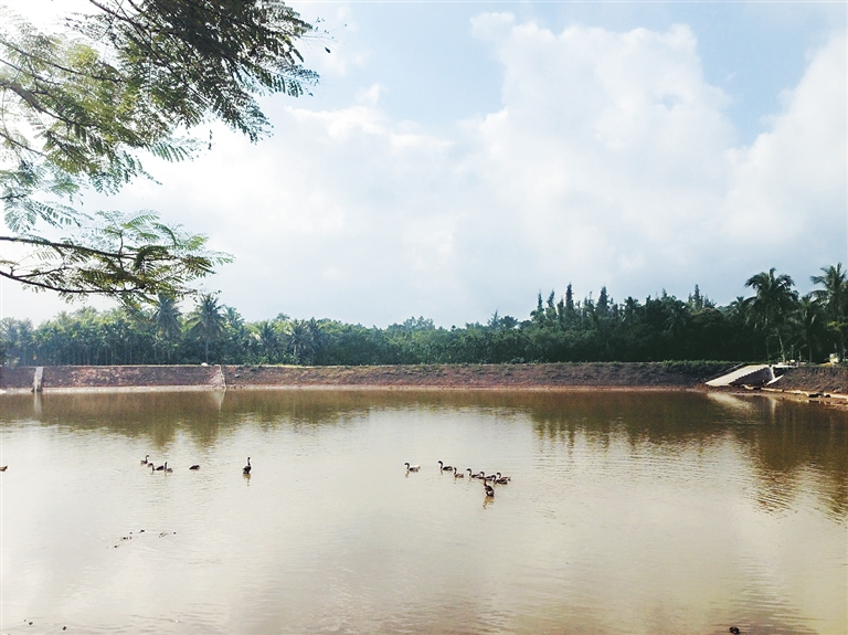 海南大学教授周廷婉就曾赞誉仙窟村的理眠塘:“置身在池塘边,仰观长空碧蓝如洗,俯视塘水清澈如镜,鱼群在追逐嬉戏,三两白鹭贴着塘面自由翱翔……”