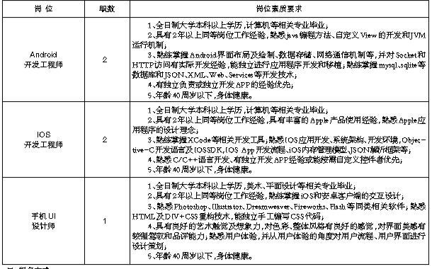 一、招聘岗位及要求
