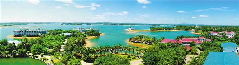 定安有绿水,南丽湖内,岛屿众多,湖湾与小岛岸水相拥,湖光潋滟,恰似山水画。