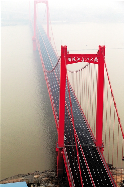 12月28日,历经3年多建设施工,由中国中铁大桥局承建的武汉鹦鹉洲长江大桥正式通车。 鹦鹉洲长江大桥位于武汉长江大桥上游2公里处,全长3.42公里,主跨850米,是目前世界上跨度最大的三塔四跨悬索桥。 新华社发