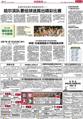 海南日报 体育新闻综合 011 2014-12-291 2014年12月29日 星期一