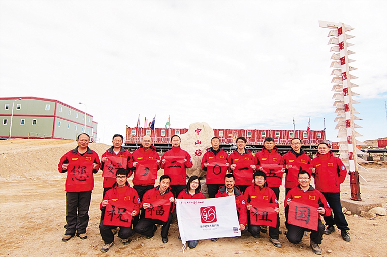当地时间1月1日,在“中山石”前,中国第31次南极科考队中山站越冬队员与记者一同祝福新年。 在接下来的一年时间里,中国第31次南极科考队中山站越冬队员将完成高空物理观测、海冰观测、海洋潮汐观测等科考项目。