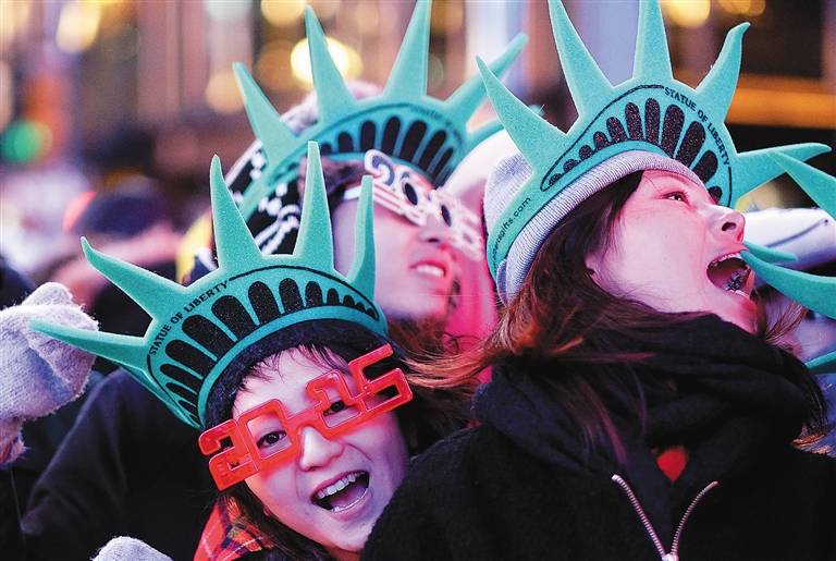 2014年12月31日晚,人们再度聚集美国纽约时报广场,一同见证水晶球降落的历史瞬间。人们倒数计时,迎接新一年的开始,延续这一拥有111年历史的传统。