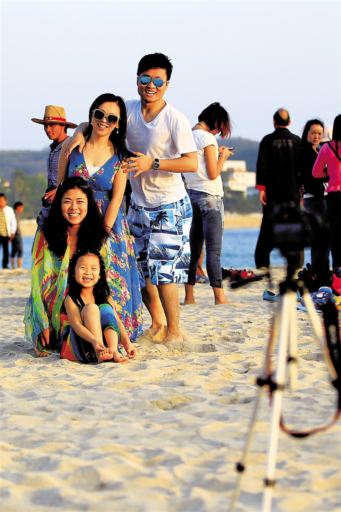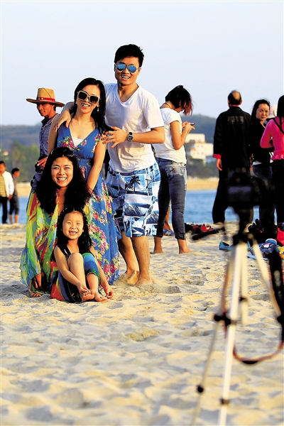 1月2日,游客在三亚大东海景区海滨留影。本报记者 武威 摄