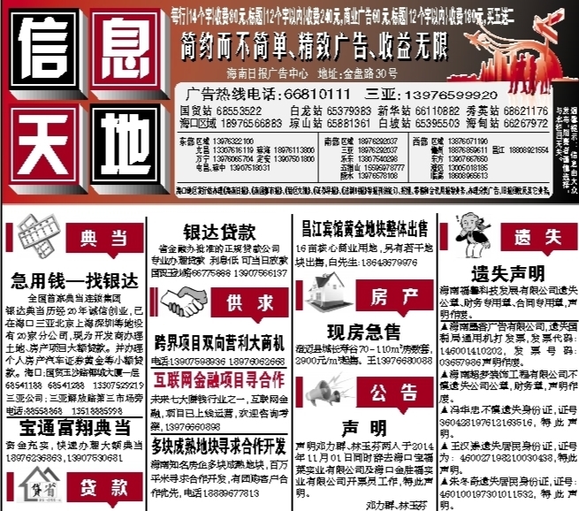 欢迎在海南日报 南国都市报刊登广告