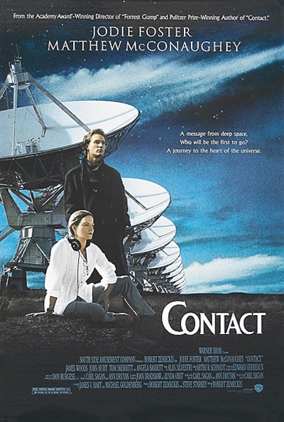 《超时空接触》是时空穿越电影中少有的让科学与宗教高度契合的题材。主人公艾莉进行了十八小时的时空穿越,见到了对她影响巨大但已死去的父亲——实际上是外星人制造的具象——她无法证实自己的这段经历的同时,秉承实事求是的精神又必须坚持这段经历的真实性。到了这一步,影片已经揭示了科学与宗教的微妙博弈,女主人公无法解释她的时空之旅,至少从现有的科学认知中找不到合理的证据,但事实又是存在的,如果外星人存在,那么在片中岂非扮演了上帝的角色?