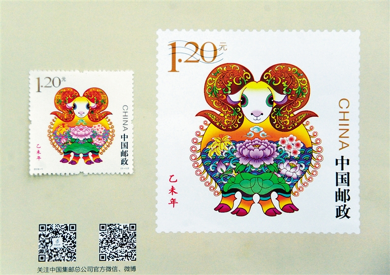 1月4日在沈阳市集邮公司拍摄的即将发行的《乙未年》特种邮票。 中国邮政将于1月5日发行《乙未年》特种邮票1套1枚,全套邮票面值为1.20元。该套邮票是中国邮政发行的第三轮生肖邮票的收官之作。 新华社发