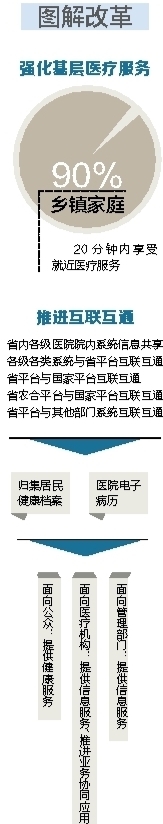 据了解,省卫计委将进一步推进互联互通,使省内各级医院院内系统互联互通,信息共享、各级各类系统与省平台互联互通、省平台与国家平台互联互通、省农合平台与国家平台互联互通、省平台与其他相关部门系统互联互通。通过共享互联互通的系统,归集农村居民健康档案、城镇居民健康档案、医院电子病历。面向公众提供健康服务,面向医疗卫生机构提供信息服务、推进业务协同应用,面向管理部门提供信息服务。