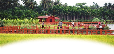暧暧远人村,依依墟里烟。琼海嘉积镇城郊的龙寿洋国家农业公园里,荷塘、白鹭、稻香,和着村庄袅袅飘出的炊烟,这一幕幕美景为这片广袤的田野谱写着一首隽永的诗篇。农民、市民与游客,都在这片净土里找到了各自的乐趣。