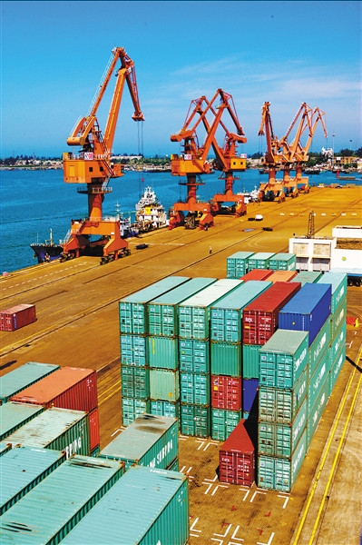 去年12月17日上午,洋浦小铲滩集装箱码头,洋浦港口管理负责人陶嘉顺指着平静的海湾自豪地告诉记者:“这里是我省目前最大的深水集装箱专业码头,可同时停靠3艘5万吨级集装箱船,水工结构按15万吨级设计。未来还将配套建设15万吨级的深水航道,到那时全球最大的集装箱船都可以在这里停泊。”