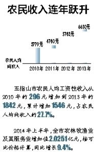2014年五指山市财政继续安排2000万元作为促进农业结构调整、农民增收的发展资金,重点扶持种植大户和企业发展热带花卉、高山蔬菜、茶叶、灵芝忧遁草、五指山野山鸡、五指山猪等特色农产品。