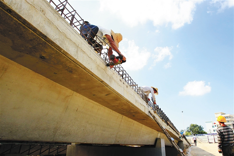 据悉,榕根桥改造重建工程左幅自2014年9月1日动工以来,工程进展顺利,桥梁已经架通,桥面施工正在紧张进行,预计春节前将完工通车。