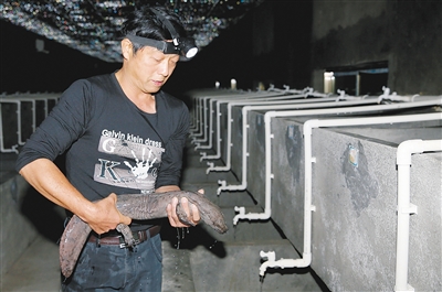 据介绍,该地区依靠松涛水库资源及天然饲料,一般农户只需60平方米面积,一个人可养200至300尾大鲵。