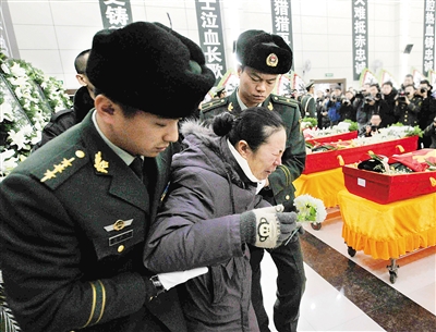 1月8日,群众在追悼会上哭泣。 当日,黑龙江哈尔滨“1·2”火灾抢险救援中牺牲的赵子龙、傅仁超、张晓凯、侯宝森、杨小伟五名烈士追悼会在天河园殡仪馆举行。新华社记者