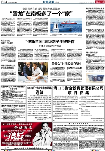 海南日报 世界新闻动态 012 2015-01-091 2015年01月09日 星期五