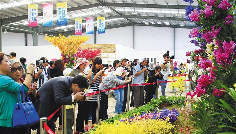 上午9点30分,游客、市民涌进兰花文化旅游区内,争看各式各样的兰花斗艳。兰博会展览馆内设有获奖作品展示区、景观区、橱窗花艺展示区、酒店花艺展示区等18个展区,设置单株竞赛、组合盆花竞赛、商品兰(鲜切花)竞赛等五类竞赛88个奖项,下转A02版▶