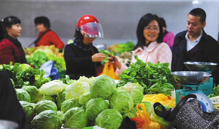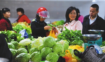 1月11日,海口再次大幅降温,海口港丰农贸市场内叶菜充足,没有因阴雨天气而涨价。据观察,在海口多家农贸市场,叶菜价格均较前期有所下降。