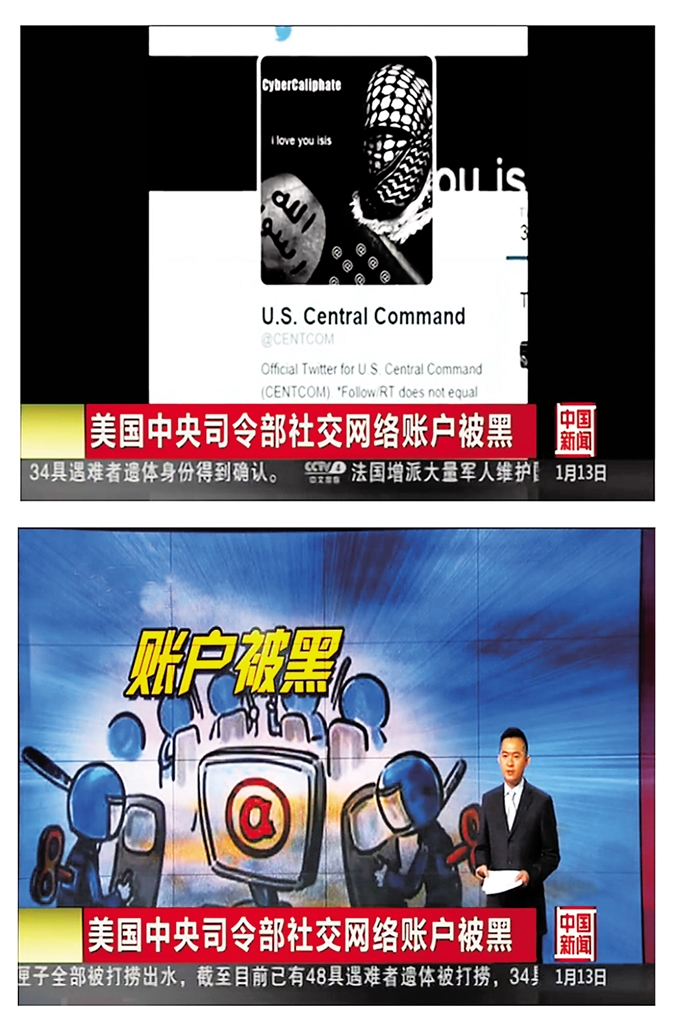 黑客侵入美军中央司令部的“推特”账户后,把账户名称改为“网络哈里发”,发布支持极端组织“伊斯兰国”和威胁美军的微博。