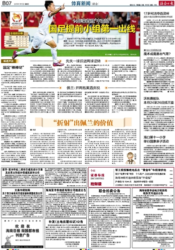 海南日报 体育新闻综合 015 2015-01-151 2015年01月15日 星期四