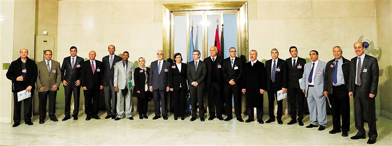 1月14日,在联合国利比亚支助特派团(联利支助团)斡旋和主持下,来自利比亚国民代表大会、部分武装团体、经济领域以及公民社会的多方代表在联合国日内瓦办事处所在地万国宫举行新一轮政治对话,力图通过政治进程寻求解决利比亚日益严重的政治和安全危机。 新华社/路透