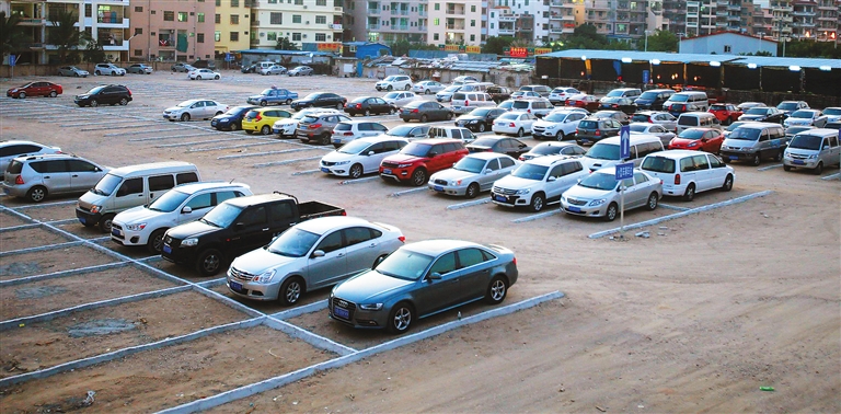 1月15日,三亚市南边海景观大道农贸市场旁新建停车场,车辆井然有序。据了解,三亚在天涯区建设15个停车场供春节期间免费使用,已有13个停车场投入使用。本报记者 李英挺 摄