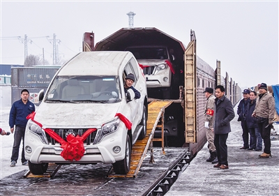1月16日,工作人员驾驶一辆越野车从海铁联运的汽车专列上驶下。 当日上午8时,232辆进口整车坐着火车沿第二条铁路亚欧大陆桥抵达乌鲁木齐西站,完成了首趟“丝绸之路”之旅。开辟了进口整车运输领域一种全新的运输方式,在全国汽车进口口岸中首创进口整车海铁联运新模式。 据悉,随着进口整车海铁联运新模式的开通,未来进口整车还将通过铁路亚欧大陆桥中转发往中亚地区。 新华社记者 赵戈 摄