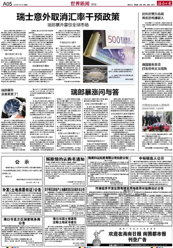 “我已经无话可说,”瑞士斯沃琪公司首席执行官尼克·海克说,“瑞士央行决定所引发的是一场海啸,对出口产业,对旅游业,乃至对整个国家。”