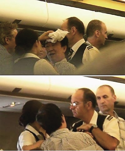 2014年4月16日凌晨,在泰国航空公司曼谷飞往北京的航班上,三名中国游客发生激烈争吵,进而发生肢体冲突,在冲突过程中一名乘客用飞机上用餐的刀叉刺向对方,致使有人受伤流血。后来空乘人员制止了这场冲突。据目击者称三人冲突的起因是一名乘客在吃饭,另两名乘客想要睡觉,嫌这名吃饭的乘客声音吵,双方便发生了冲突。