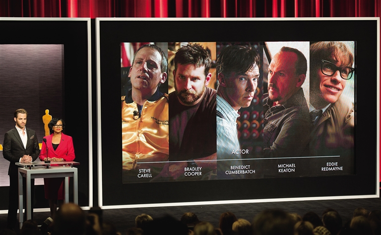 获得最佳影片提名的还有《美国狙击手》《少年时代》《塞尔玛游行》《万物理论》和《爆裂鼓手》。