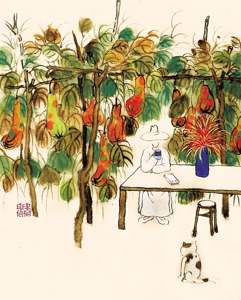 这一喜欢不打紧,阔绰地花了一大团时间,把他的微博翻了个底朝天,把他那些我从来没见过的画,从头到尾看了个饱。从此饱含深情地成为老树画画的铁杆粉丝,俟其新画一出,即抢先下载转发到微博、微信朋友圈,以彰显自己的品位不低,并为此四盼得意。