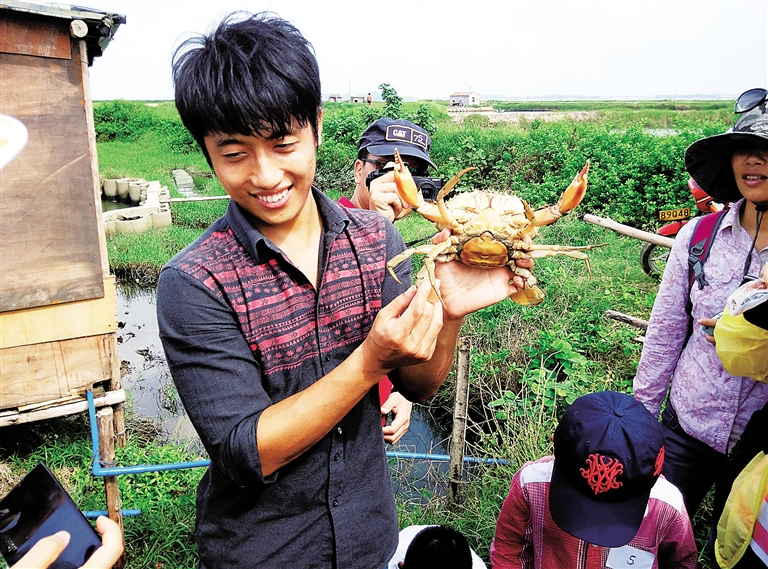 为了教会大家如何识别会游泳和不会游泳的螃蟹,该堂公益讲座的主讲人——万宁和乐蟹保育中心发起人之一卓齐辉像变戏法一般,从兜里掏出了一只活生生、胖乎乎的和乐蟹。“听众们一下子就都‘疯’了,纷纷离开座位跑来看螃蟹、和螃蟹合影,劝都劝不回去。”回忆起不久前的这场公益讲座,高高还兴奋不已,“更没想到的是,卓齐辉还带来了许多煮熟的和乐蟹分给听众,所以整场讲座除了讲课声、欢笑声,还不停有咯吱咯吱啃蟹腿的声音。”