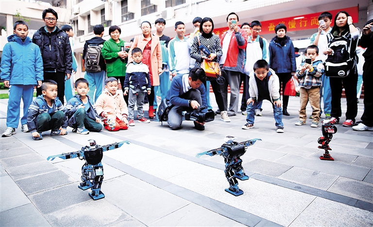 1月16日,在海南中学校园,机器人舞蹈表演吸引众人围观。据介绍,科技节是该校开展科技创新的一项活动,通过机器人创意作品展、机器人走迷宫赛、航模表演展示及气球索道运输等比赛,不仅丰富了校园生活,也为培养学生科学兴趣和创新能力提供了良好平台。