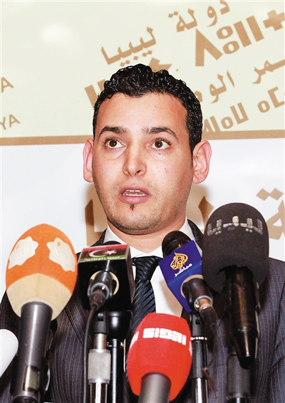 1月18日,在利比亚的黎波里,利比亚国民议会发言人哈密丹在新闻发布会上讲话。 继利比亚民兵武装“利比亚黎明”两天前同意全面停火后,利比亚政府军18日宣布自当日起停火。 新华社/法新